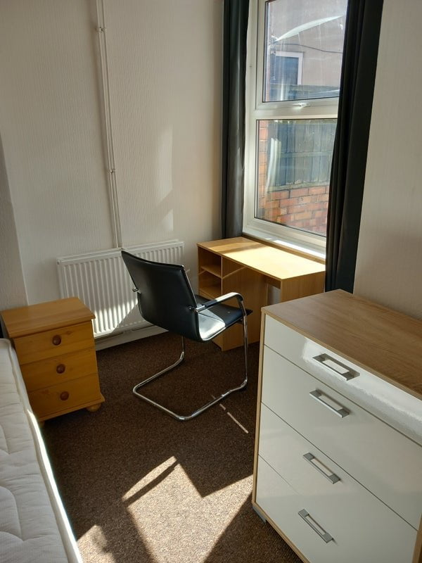 This student shared house includes 6 Double Bedrooms, 2 Bathroom, Kitchen, lounge, Off Street Parking, a desk with a Chair, Garden, TV provided and fully furnished!